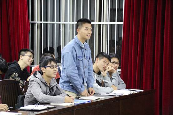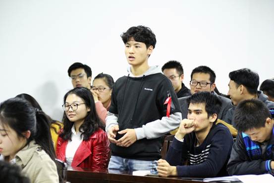 在讲述广西作为海上丝绸之路的起点、介绍“一带一路”发展对于“海洋科学”专业未来的巨大潜力时,吴教授还结合了以前学生工作、教学以及科研工作的亲身经历,强调了同学们学好英文的重要性,并为同学们“定个小目标”:大二之前通过大学英语四级考试(CET4),大三努力通过大学英语六级考试(CET6)。接下来的讲座中,吴教授围绕广西海洋渔业存在的问题、广西海水养殖业发展对策、广西海洋渔业十三五发展战略等三个命题,结合海洋生物生态、地理环境、经济贸易环境、海洋管理等为同学们详细讲述了广西海洋渔业所面临的机遇与挑战、海水养殖业发展的理念与战略规划、海洋渔业“九个方面”的“一突破、而调整、三提升”战略目标等,深入浅出的学术讲解与海洋有关的“吃喝玩乐”文化产业进行结合,使同学们收获了精神食粮与物质食粮。互动环节中,同学们也结合自己的研究兴趣以及研究方向与吴教授进行了问答。