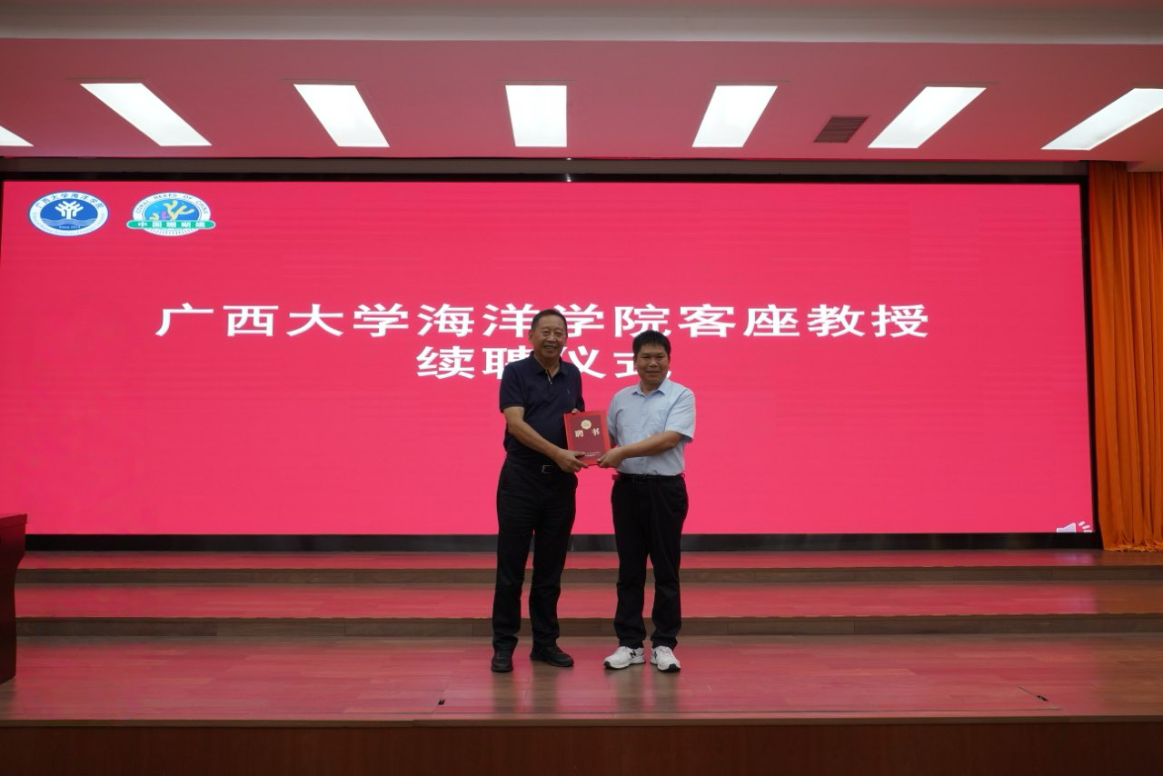 2025年9月17日,我院隆重举行傅亮研究员客座教授续聘仪式。仪式由学院党委书记秦华东主持,院长余克服教授代表学院为傅亮研究员颁发客座教授聘书。傅亮研究员现任三沙航迹珊瑚礁保护研究所所长,长期致力于珊瑚礁生态研究与保护工作,在相关领域具有深厚的学术积淀和丰富的实践经验。