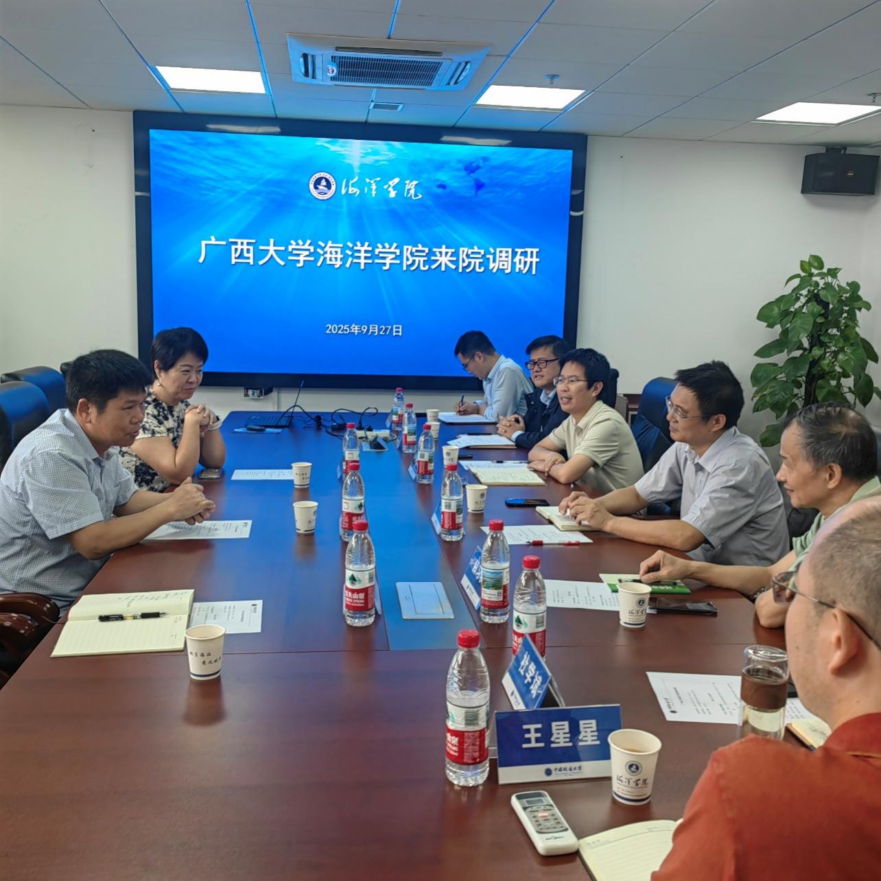 2025年9月27日,广西大学海洋学院院长、广西南海珊瑚礁研究重点实验室主任余克服教授率队,副院长徐向荣教授、重点实验室常务副主任黄荣永副教授赴中国地质大学(武汉)海洋学院开展合作交流。双方围绕学科建设、科研创新、平台发展及人才培养等领域,深入探讨合作潜力与互补优势,共同展望协同发展新路径。