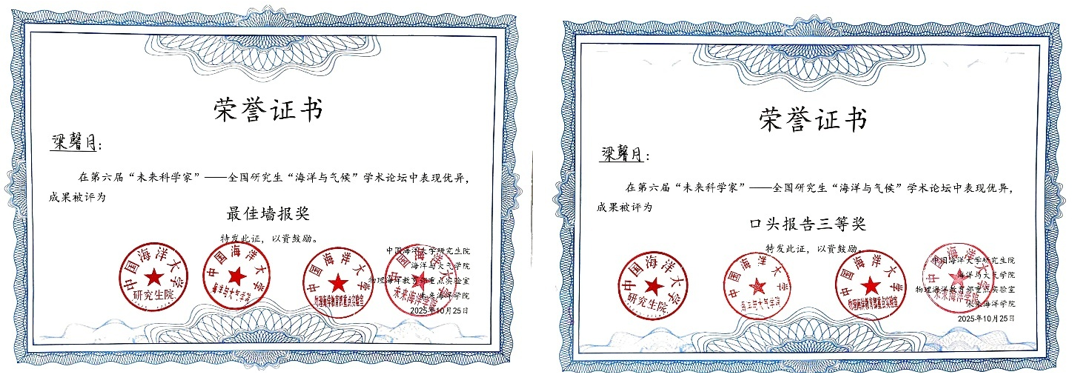 2025年10月25日,第六届“未来科学家”全国研究生“海洋与气候”学术论坛在山东青岛成功举办。本届论坛由中国海洋大学研究生院、海洋与大气学院、物理海洋教育部重点实验室及未来海洋学院联合主办,吸引了来自中国海洋大学、浙江大学、兰州大学、国防科技大学、河海大学、中国科学院大气物理研究所、中国科学院海洋研究所等全国20余所涉海高校与科研院所的近400名研究生参与。